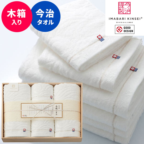 【当日出荷便】今治謹製 本晒白織タオル フェイス・ウォッシュタオルセット 木箱入り SR23020